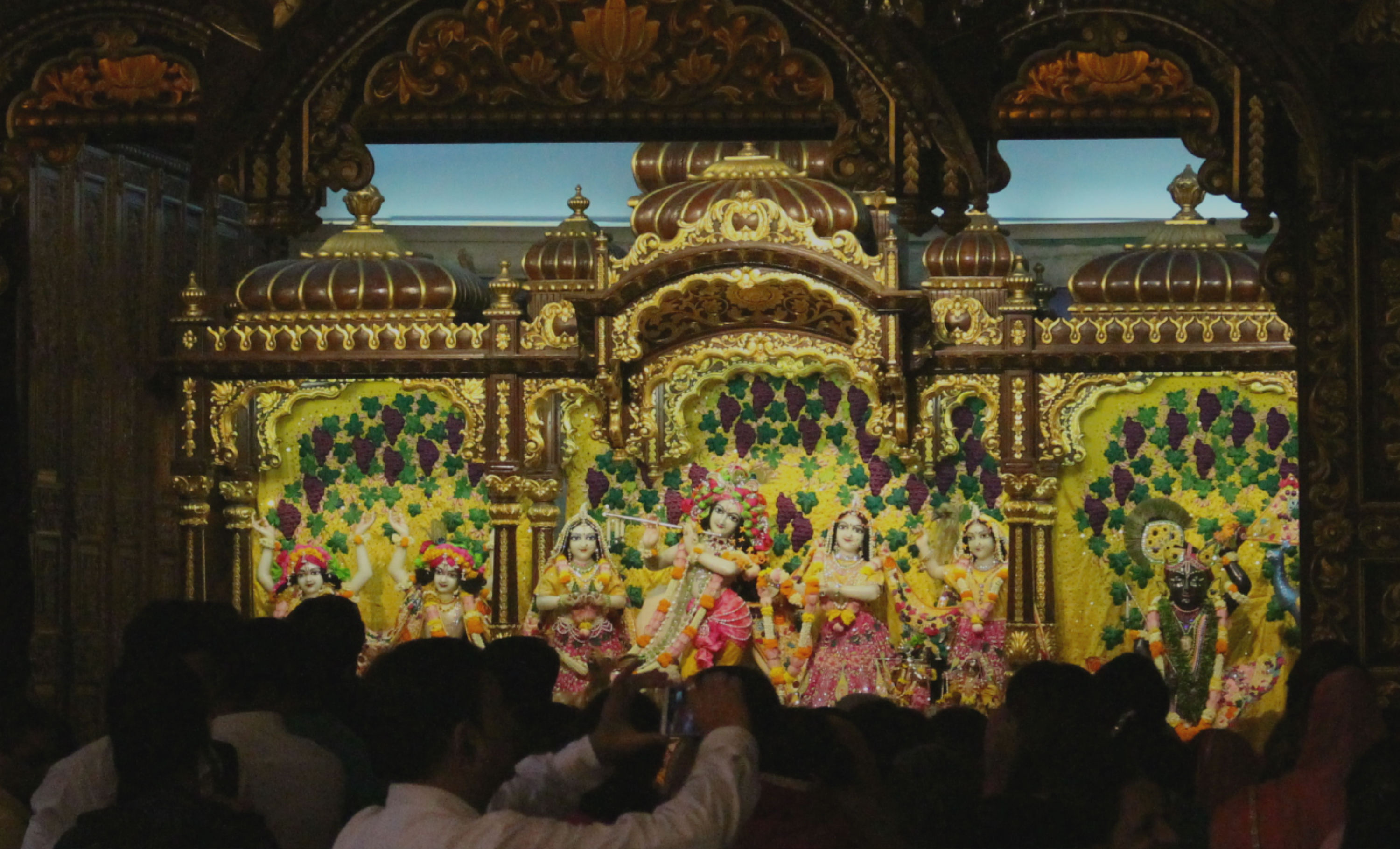Krishna depicted in a scene at Radha Gopinath Temple